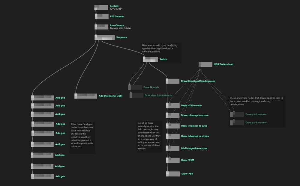 This article describes how I implemented a PBR renderer with image based lighting in Nodes.io. The article focuses on structure and the unique challenges faced as well as the advantages of building in Nodes.